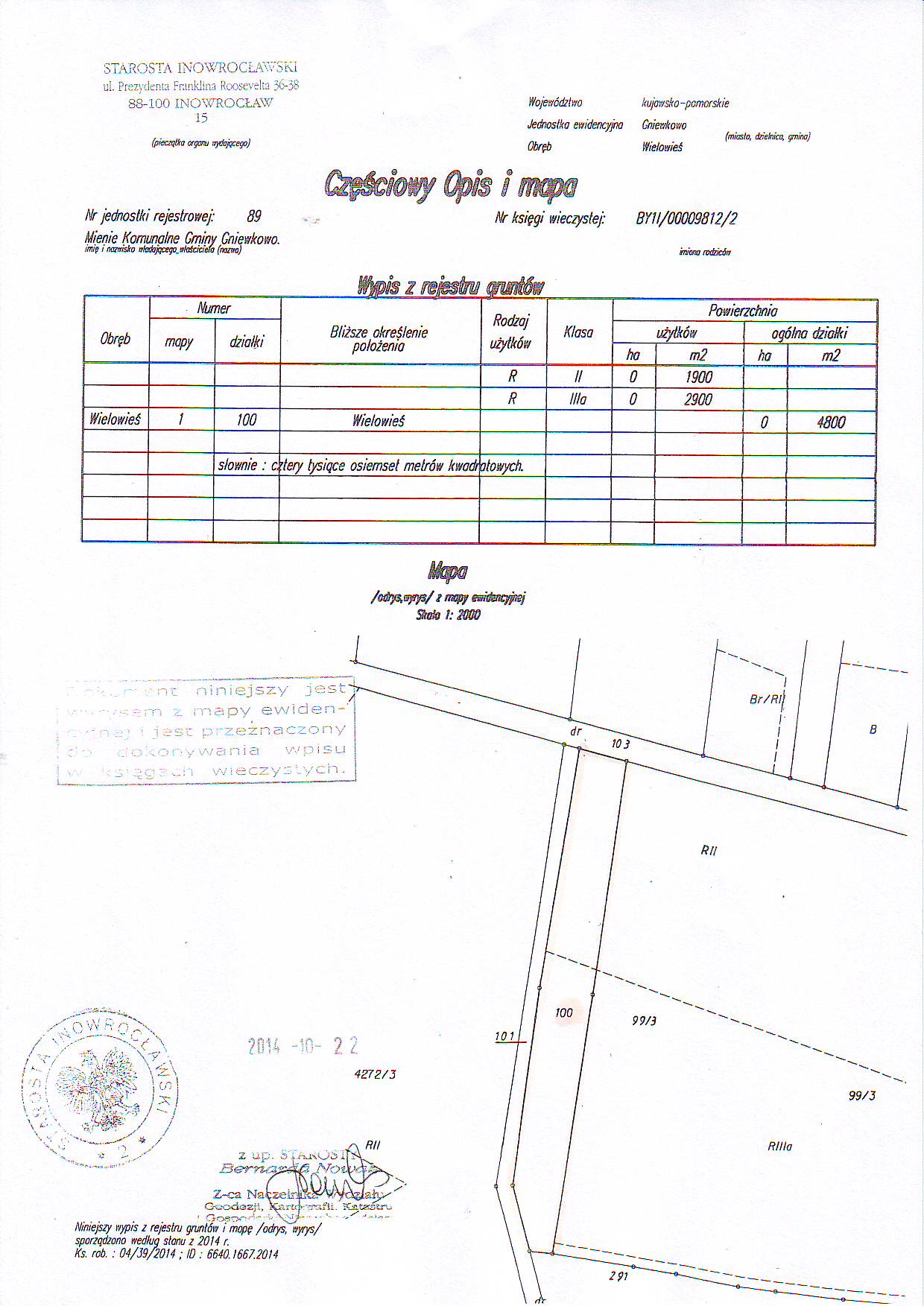 - działka nr 100 o pow. 0,4800 ha, w tym : R II - 0,1900 ha ,