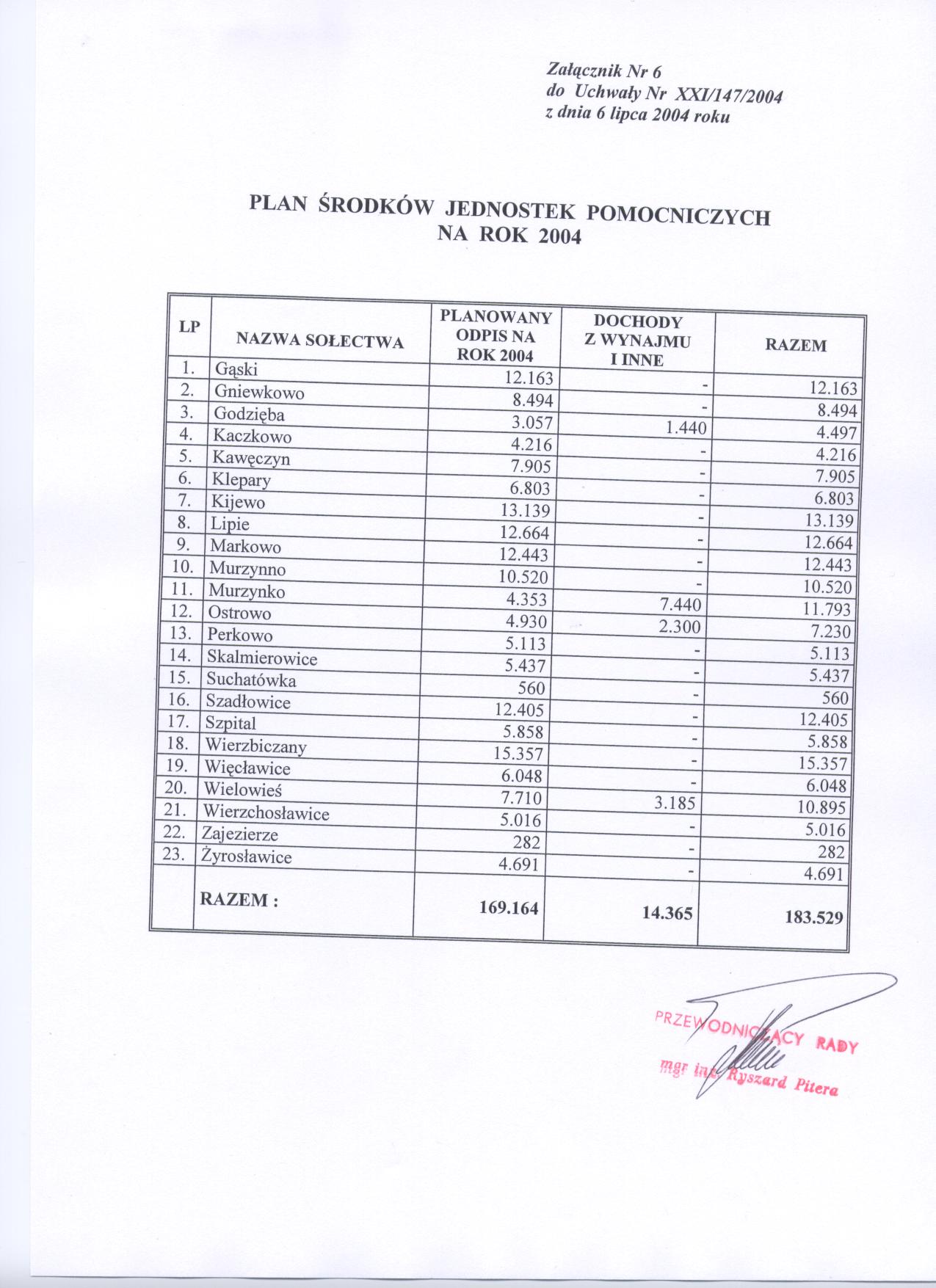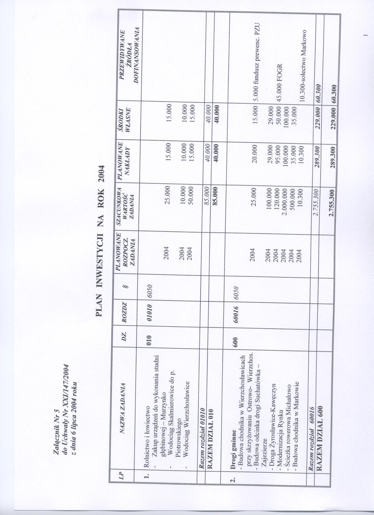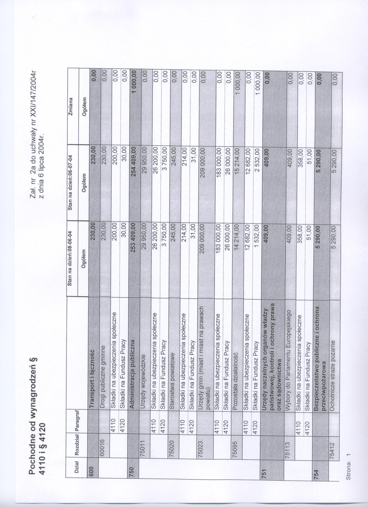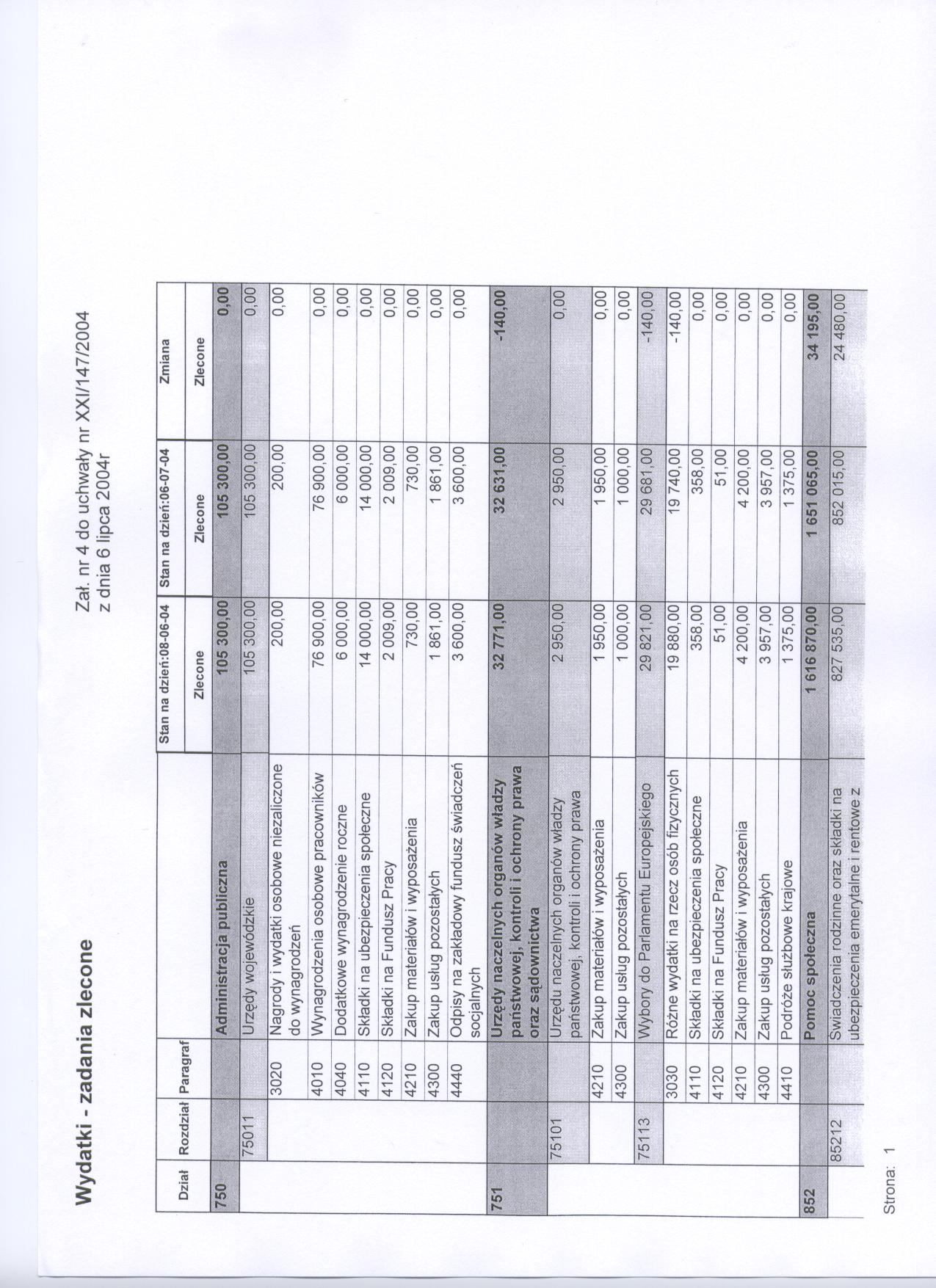 Uchwała Nr XXI/147/2004 z dn. 06.07.04r. w/s zmian do uchwały Rady Miejskiej Nr XVII/117/2004 z dn. 25.02.04r. w/s uchwalenia budżetu oraz godpodarki pozabudżetowej na rok 2004