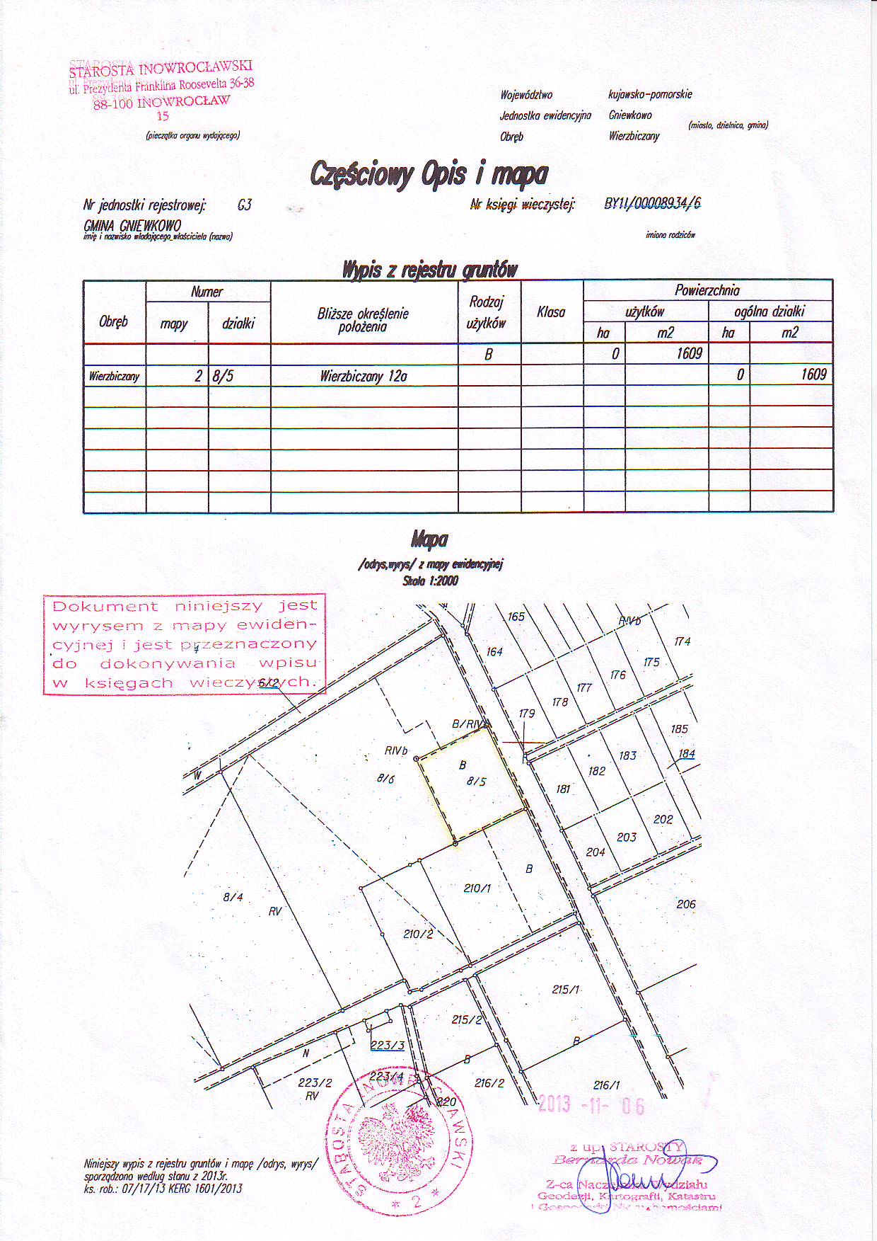 zabudowanej położonej w Wierzbiczanach, działka nr 8/5 o powierzchni 0,1609 ha,
