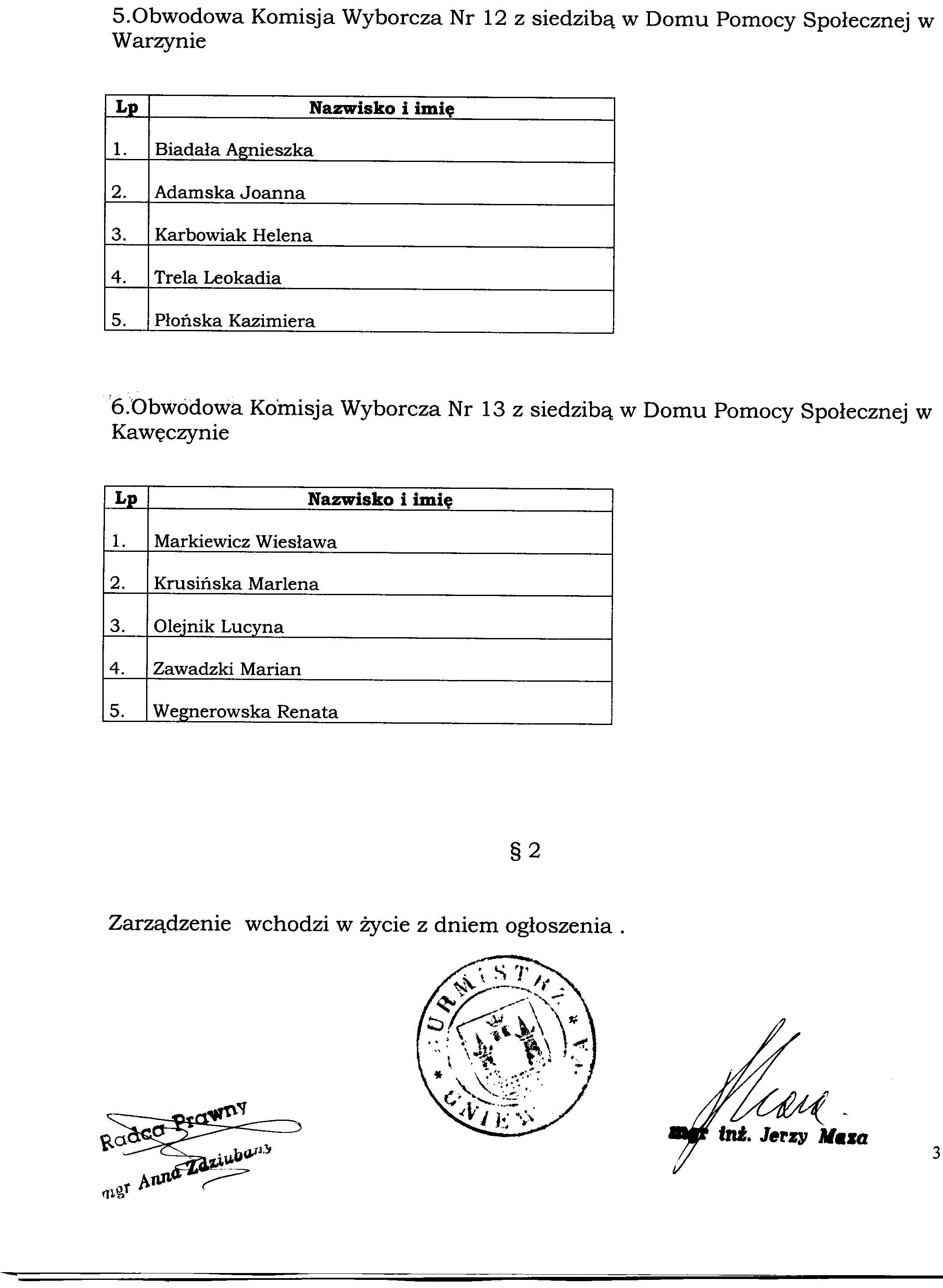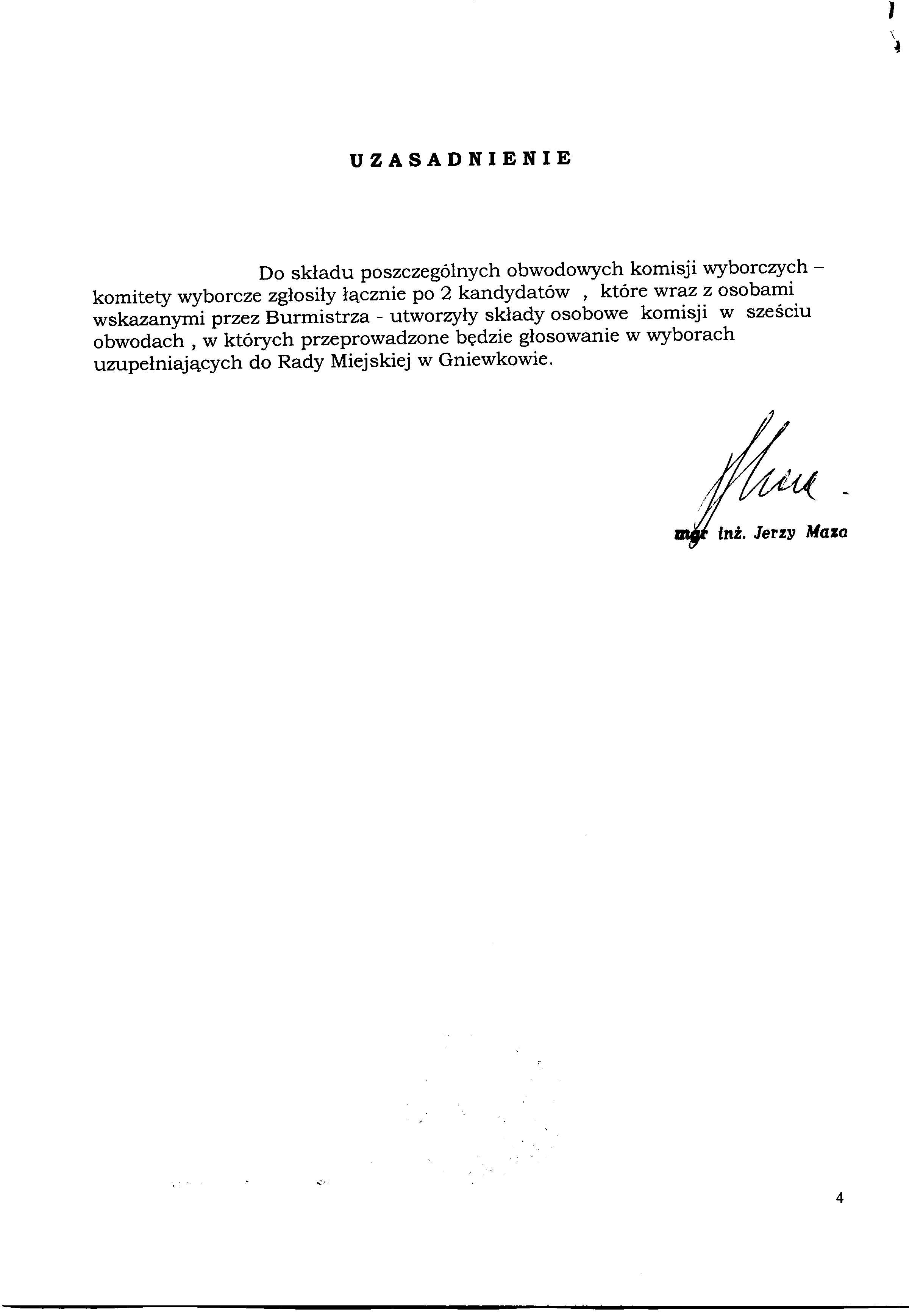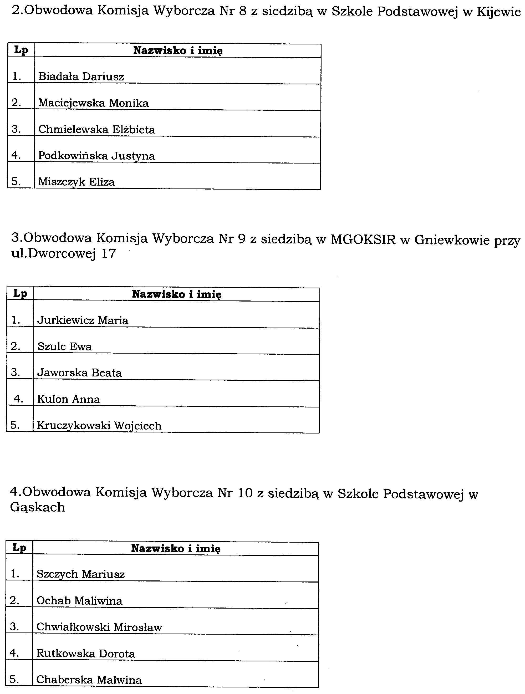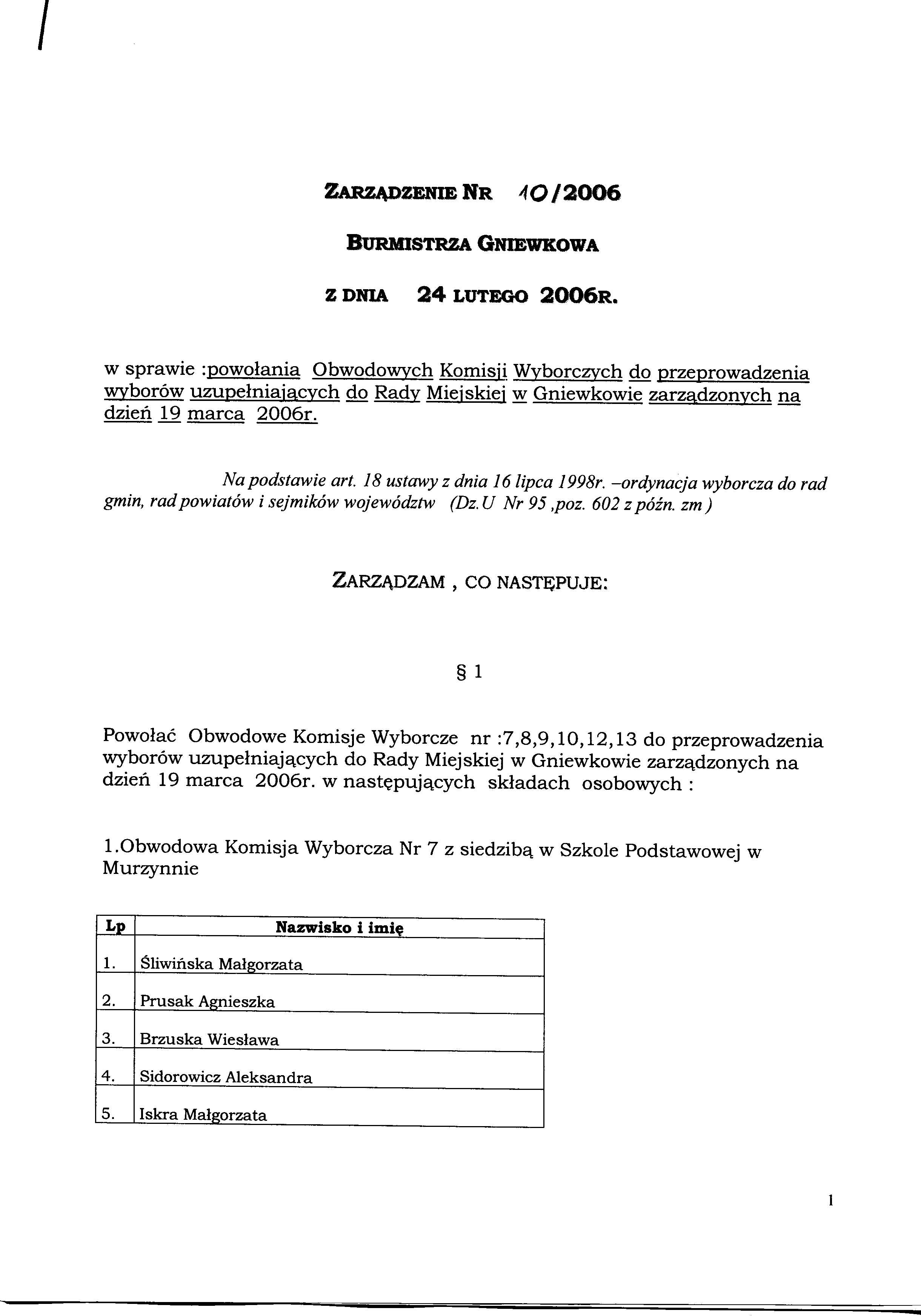Zarządzenie Burmistrza Gniewkowa Nr 10/2006 z dnia 24.02.2006r. w sprawie powołania Obowodowych Komisji Wyborczych do przeprowadzenia wyborów uzupełniających do Rady Miejskiej w Gniewkowie zarządzonych na dzień 19 marca 2006r.