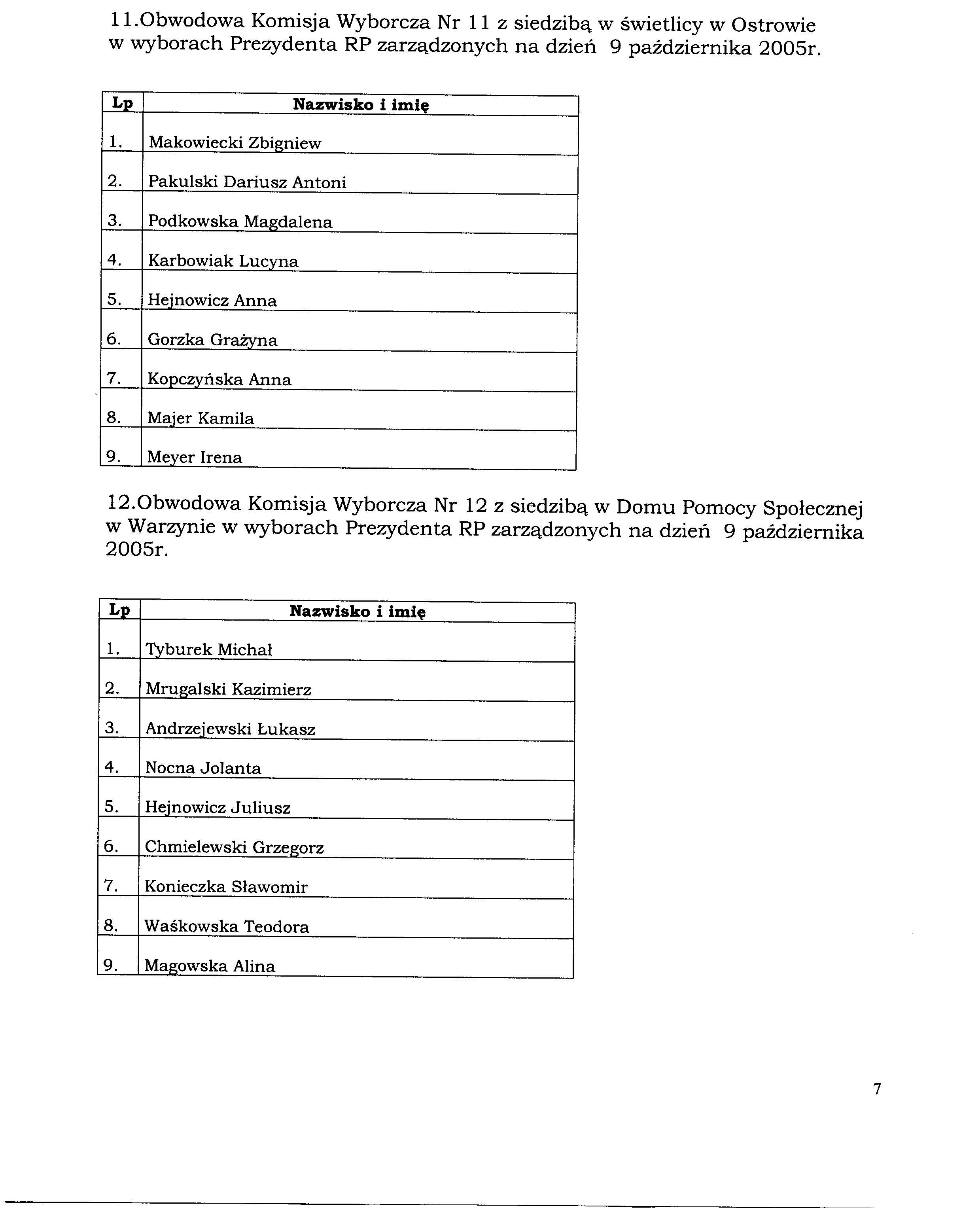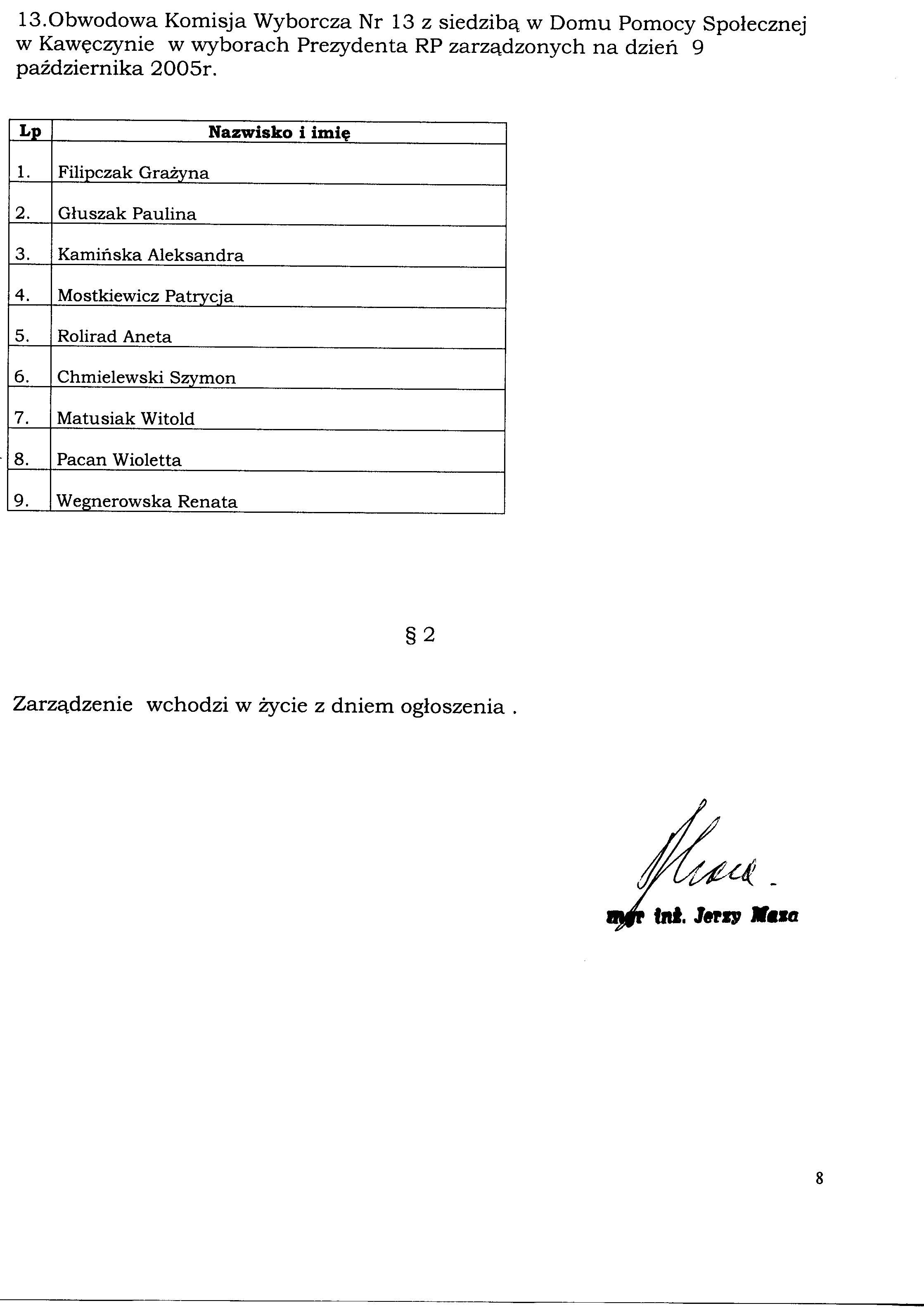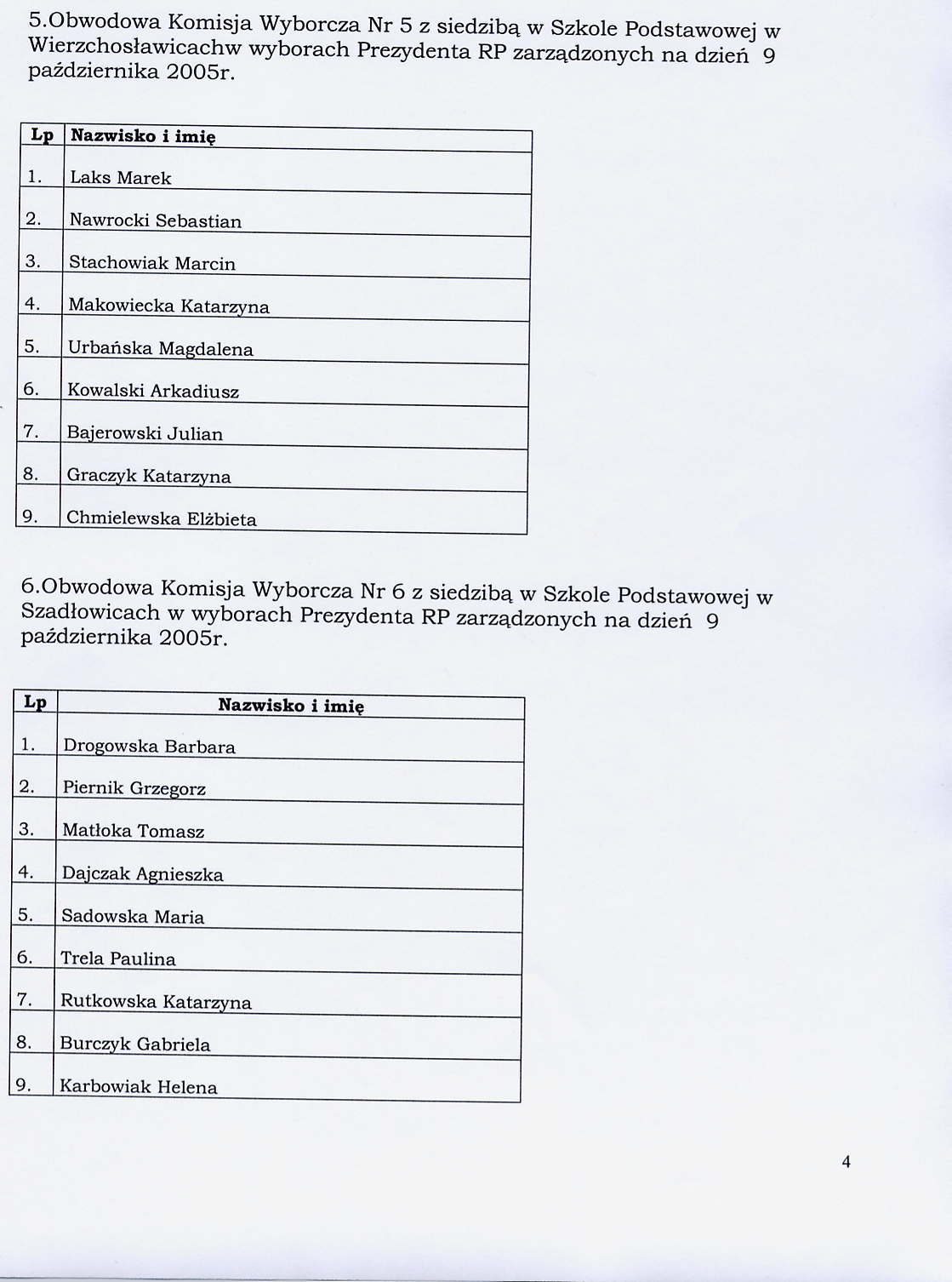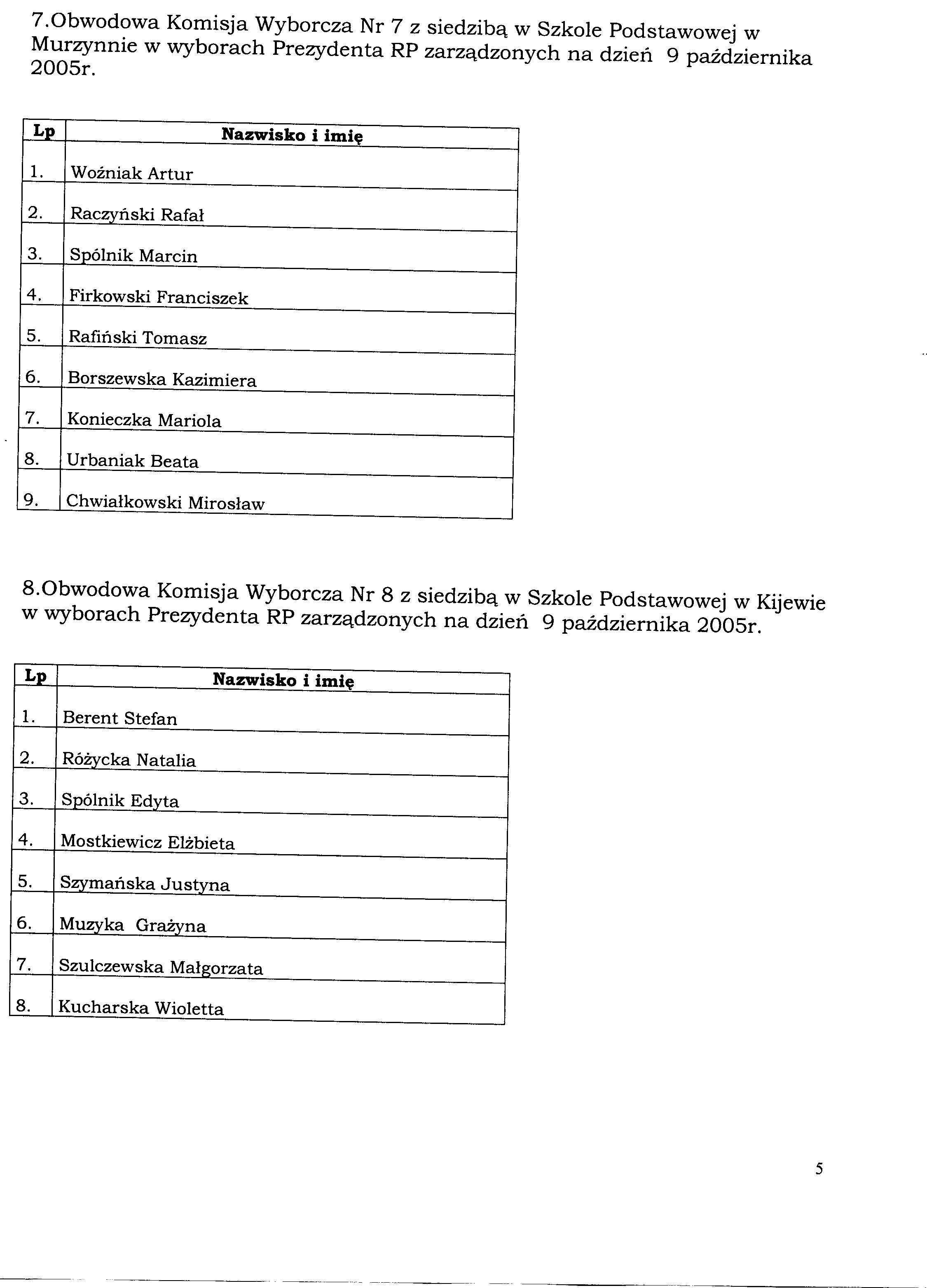 Zarządzenie Burmistrza Gniewkowa Nr 66/2005 z dnia 14.09.2005r. w/s powołania obwodowych komisji wyborczych do przeprowadzenia wyborów Prezydenta RP zarządzonych na dzień 09.10.2005r.