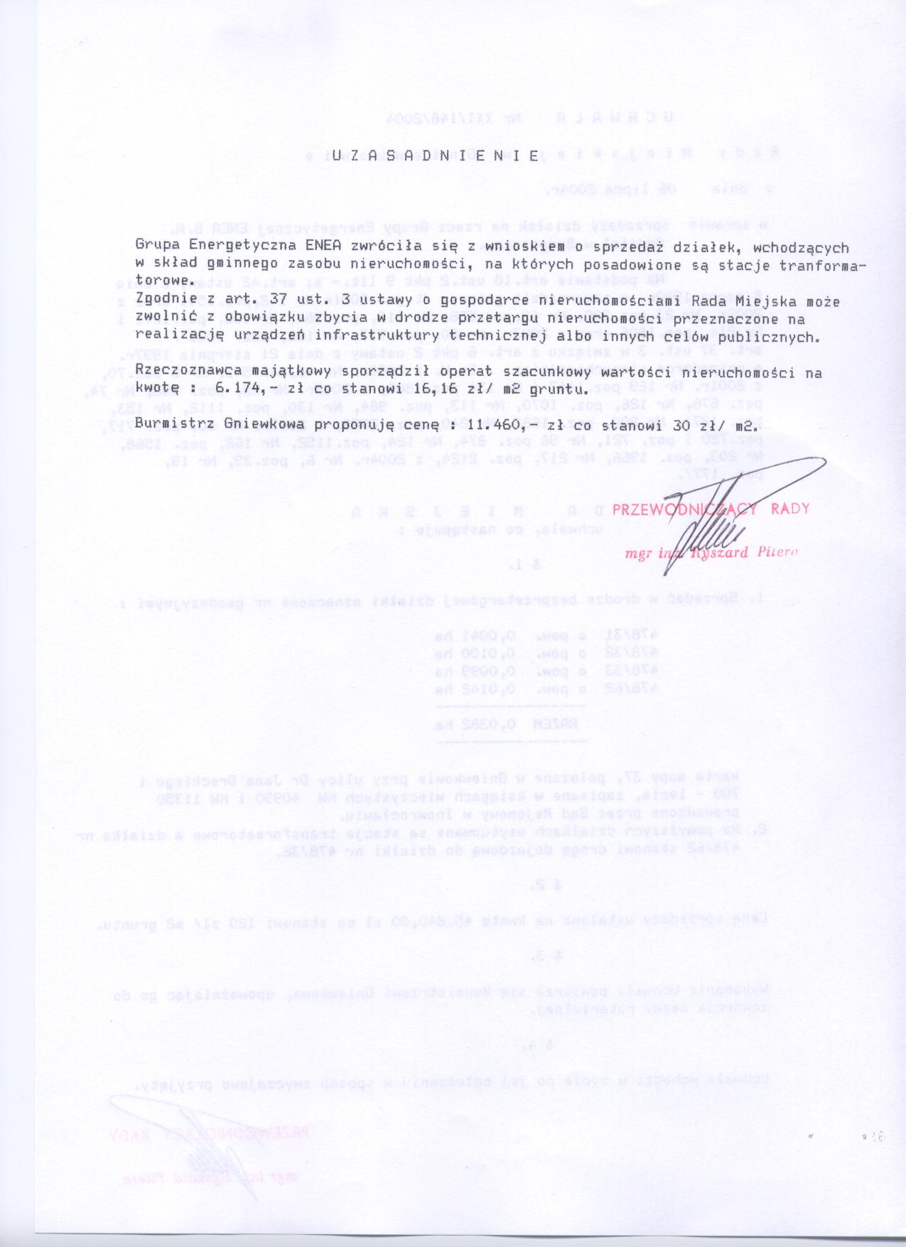 • Uchwała Nr XXI/148/2004 z dn. 06.07.04r. w/s sprzedaży działek na rzecz Grupy ENEA...
